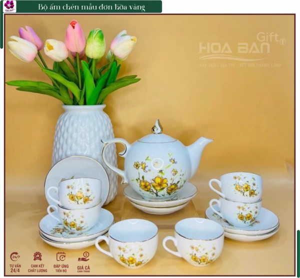 Bộ ấm chén mẫu đơn hoa vàng